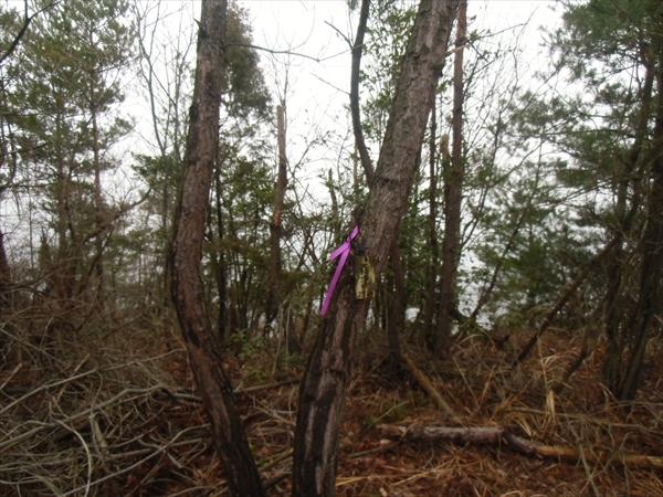 | 二艘木集落から見た、絵下山山頂方面 | 下山口 |