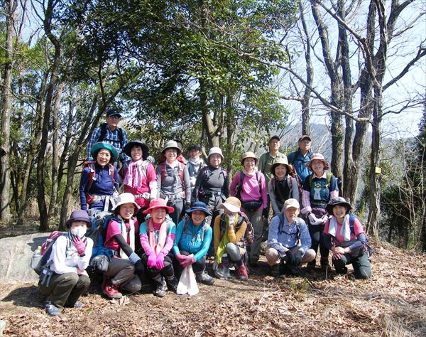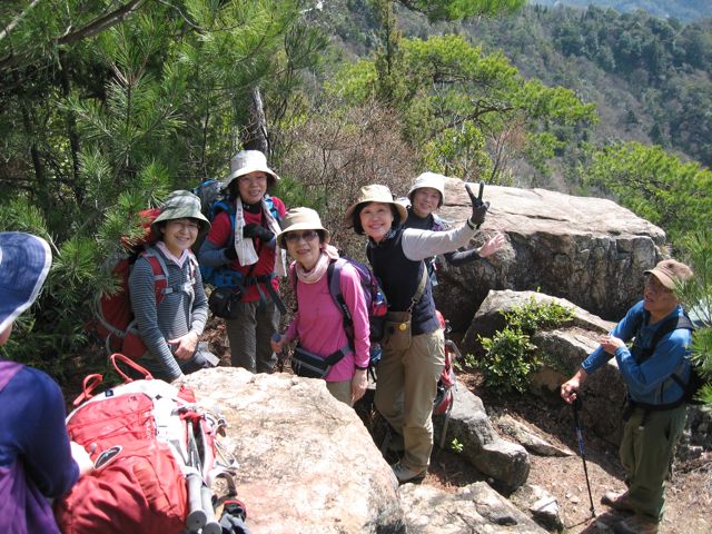 | 山頂で集合写真 | もう1枚! | 途中見晴らしのいいところで昼食 |