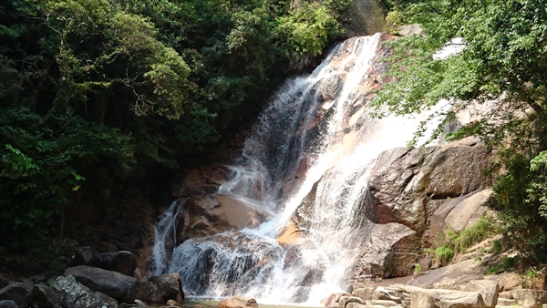 | 滝幅も広い、落差約30メートルの滝・雄滝 | 滝のマイナスイオンを浴びて、さぁ行くぞ | 満開! |