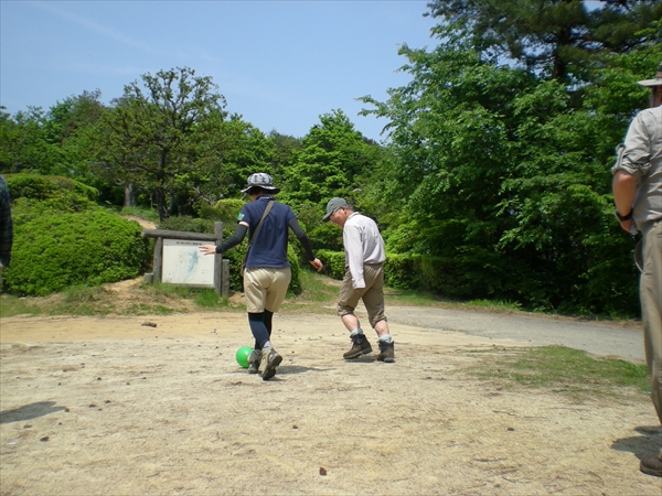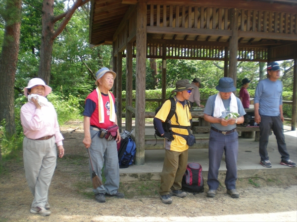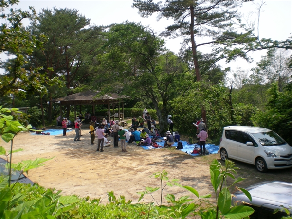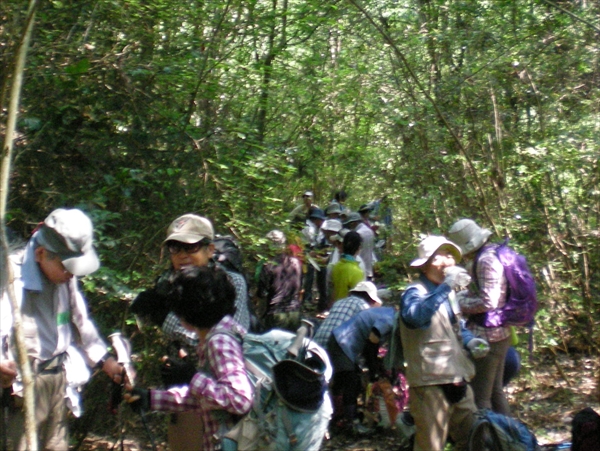 | 休憩を兼ねて後続を待ちます | もうすぐ広場。その目印の木 | 着きましたよ〜 |