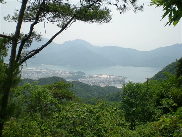 | 山頂から見える瀬戸内海 | 三角点 | ツツジが名残惜しそう |