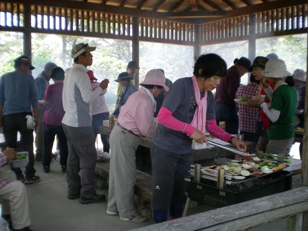 | 広場に先に来て焼き肉の準備を | 会長の挨拶 | 3班に分かれいよいよ。A班 |