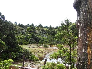 ![]() 休憩地には湿原 |