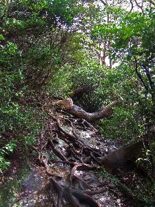 ![]() 濡れた根っこ道を |