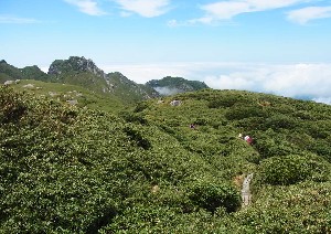 ![]() 永田岳・障子岳の向こうは海?雲海? |