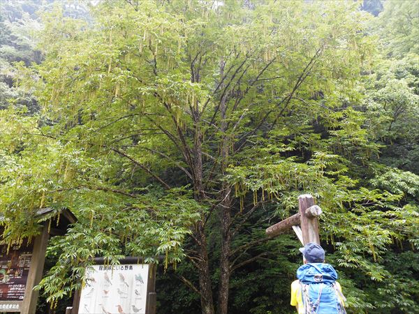 | 入口にある案内版 | 沢ぐるみの巨木 | 登山前に二段滝を見学 |