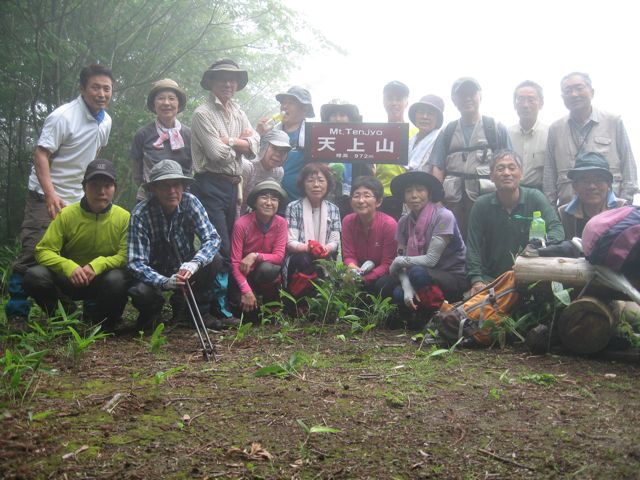 | 山頂で集合写真 | 山アジサイの群落 | ちょっとアップで |