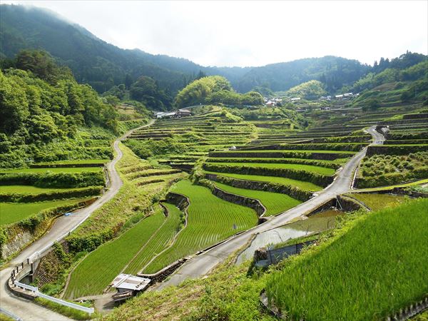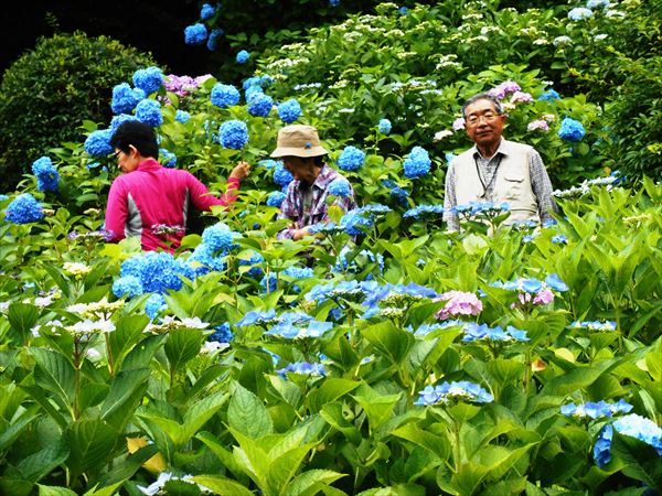 | 見事な杉の植林帯を下る | 目的の一つ、井仁の棚田を見る | 森下さん宅のアジサイ園 |