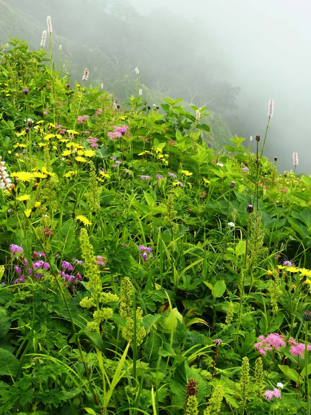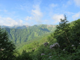 ヨツバヒヨドリ越しに稜線 |