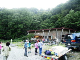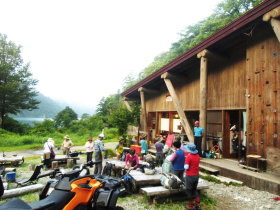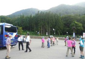 1日目(7月28日) 小型バスで大白川ダム の湖畔までまでの予定が 平瀬の道の駅でストップ ロッジから迎えの車。 |