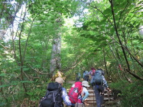 森の中を登って行きます |