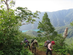白水湖を後に |