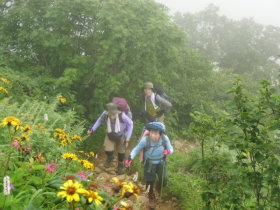 2日目(7月29日) いよいよ登山開始 ロッジの横が登山口 |