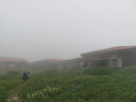 霧の中に室堂が |