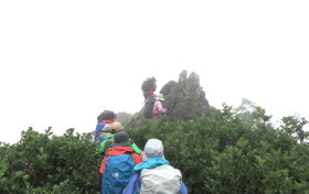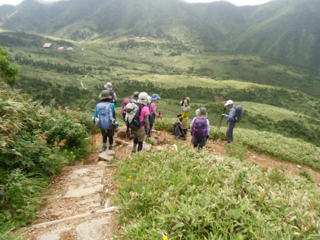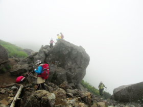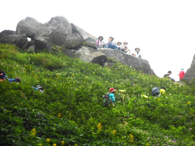 登ってくる仲間。 黒ぼこ岩から見る |