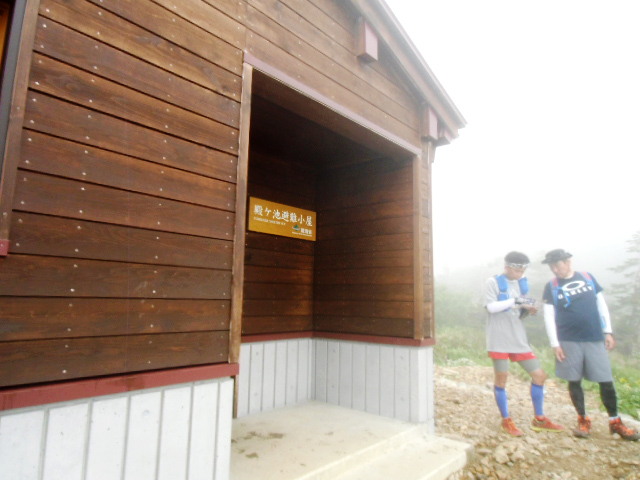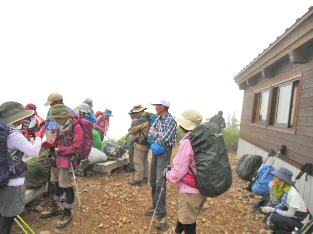 殿ヶ池避難小屋でお昼休み |