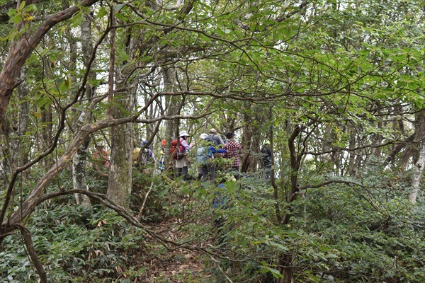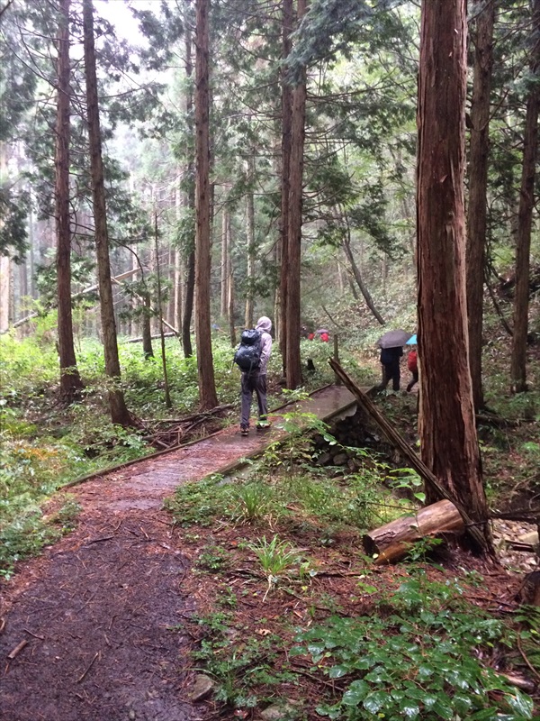 | 集合写真 | 下山時は雨 | 高岳登山口に下山 |