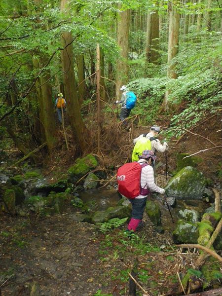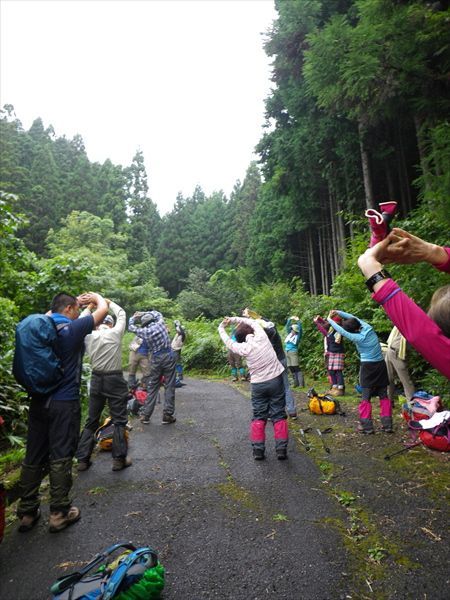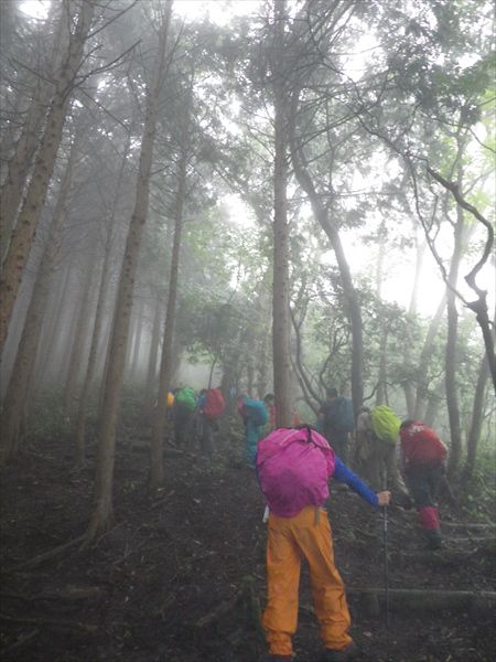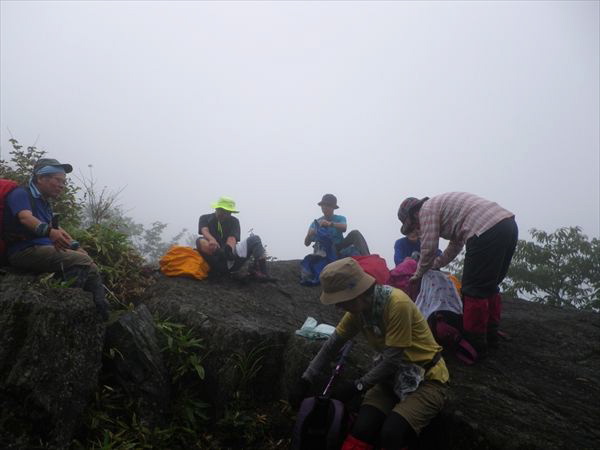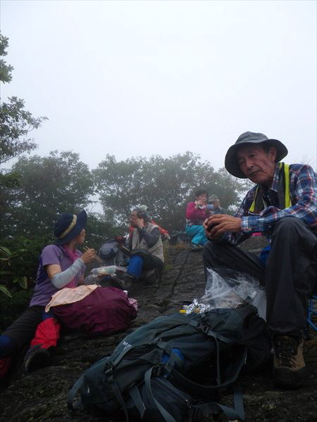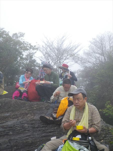| 登りが続きます。小雨も降って来たよ〜 | 大峰山山頂の八畳岩でお昼ご飯 |