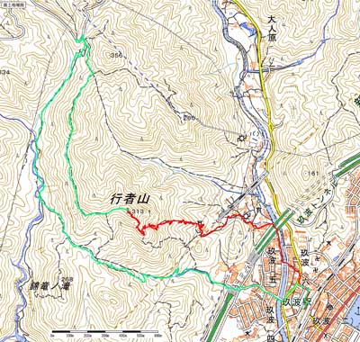 歩いたコース:赤色(登り),緑色(下り)