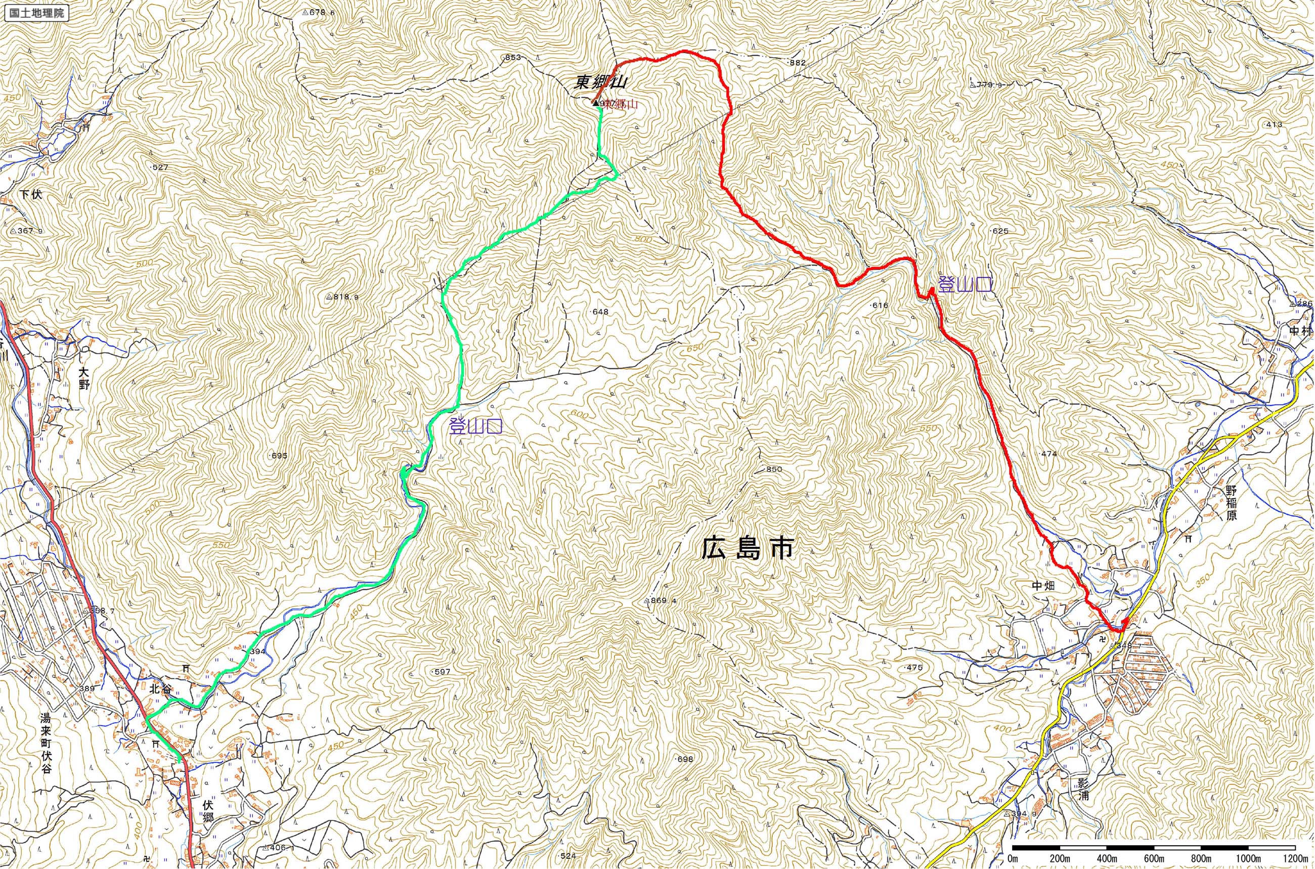 ―11:40鉄塔―12:10東郷山山頂(昼食)13:00−白井の滝