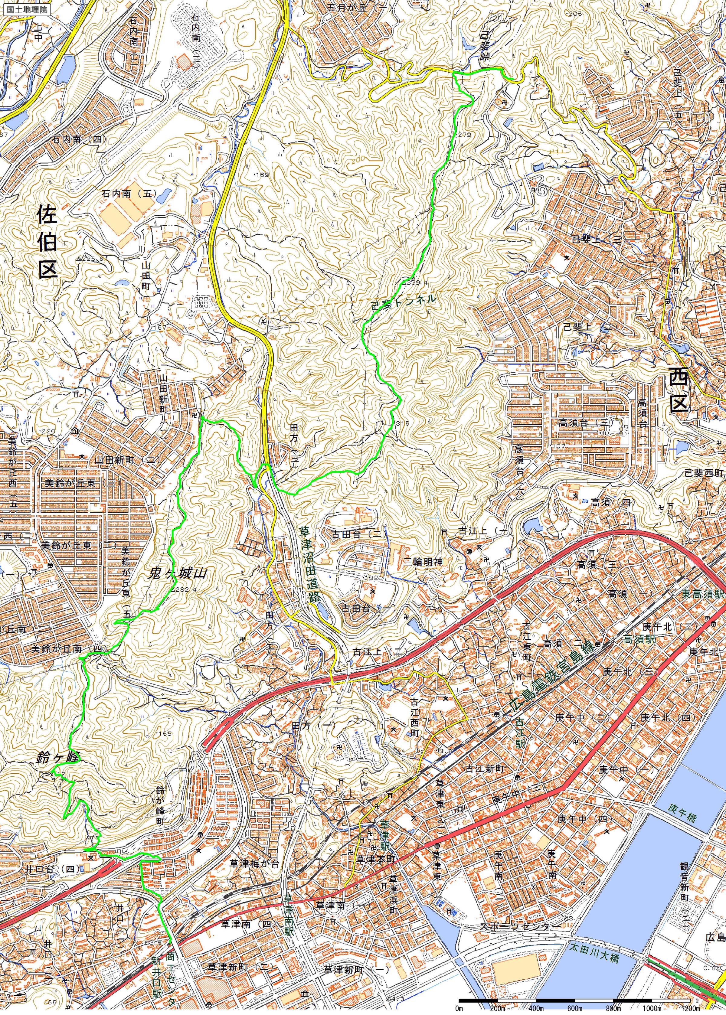 己斐峠14:45⇒己斐峠バス停15:05(バス)→西広島15:30