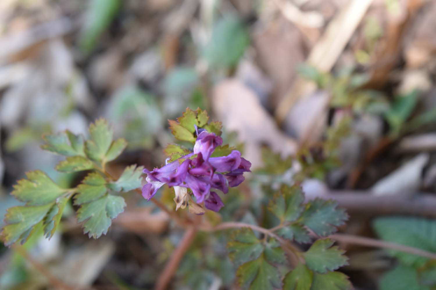 JR新井口駅に集合し10時に出発。 スコーンと抜けるような青空で、暖かく穏やかな陽気や道端の花に、まだまだ遠い春を感じた。すぐに脱いだ上着でザックが満杯になる。 話をしながら歩いているといつの間にか鈴ヶ峯山頂を経て八畳岩に着いた。八畳岩は見晴らしの良い大きな岩で美鈴が丘団地や向山方面が一望でき、ここで昼食にした。山めしはハム、チーズ、タマゴ、ジャム、レタスとバラエティーに富んだ具材のホットサンド、スープなどで、美味しくて楽しくて会話も弾んだ。