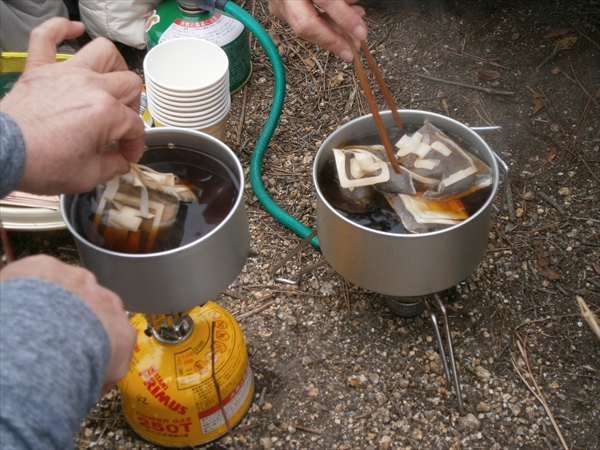 | 食後の甘くておいしい甘酒 | 頂上付近の見晴らし台 | こんな入れ方もあり、ワイルドこーひー |