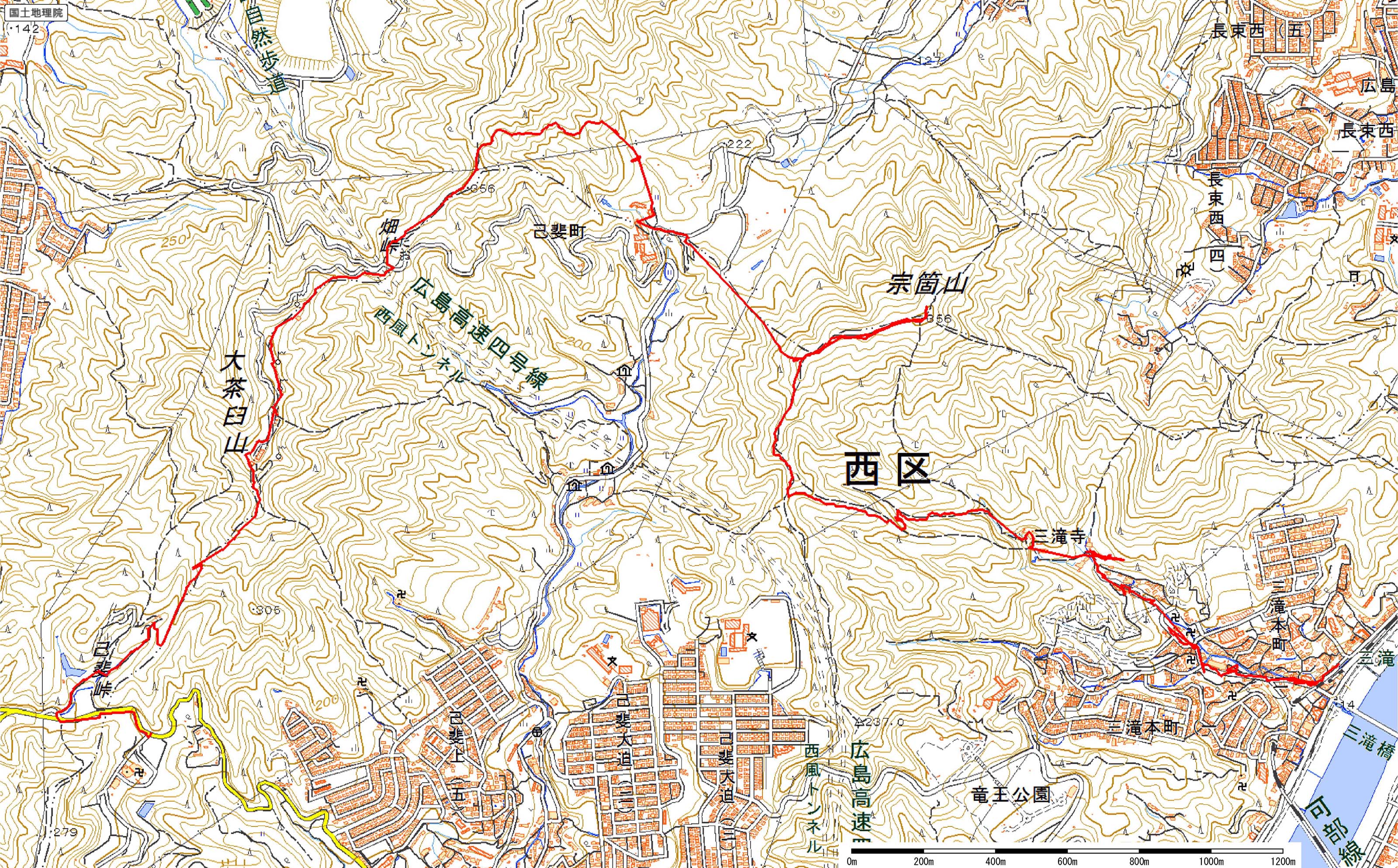 三滝駅9:00→三滝寺出発9:40→宗箇山山頂10:35→