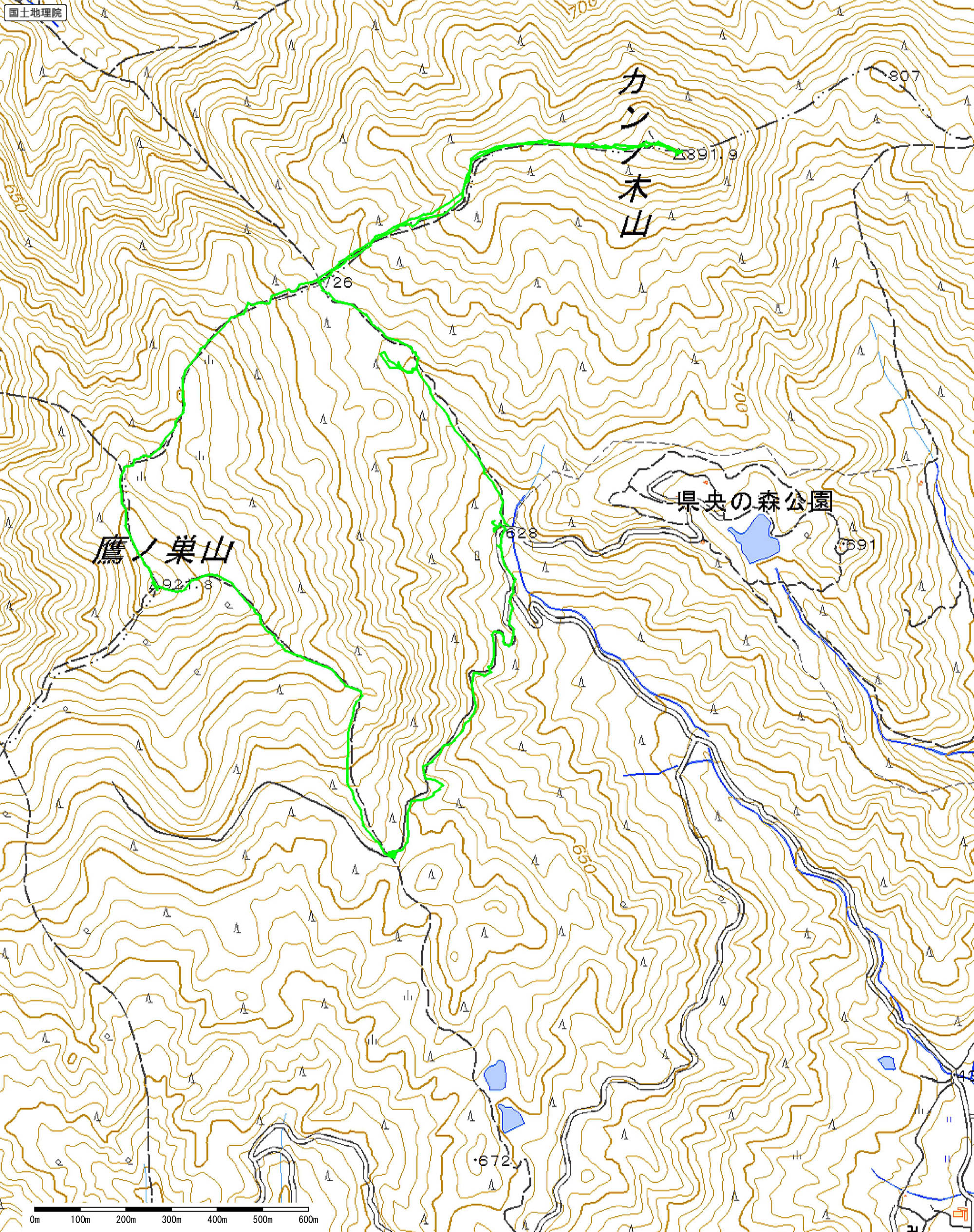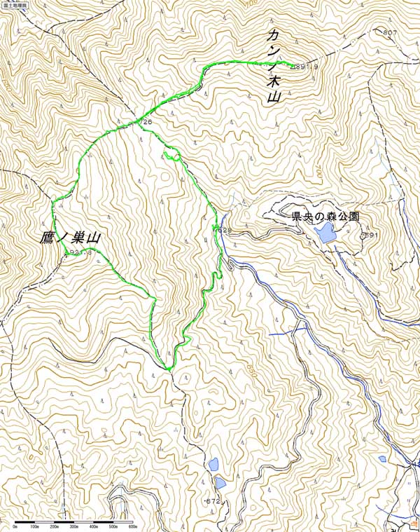 登山口9:45→10:25鞍部→10:55カンノ木山→11:35鞍部→