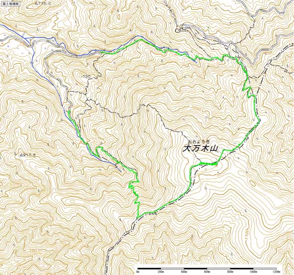 13:45→大万木山山頂14:00→(渓谷コース)→15:15位出谷駐車場15:35