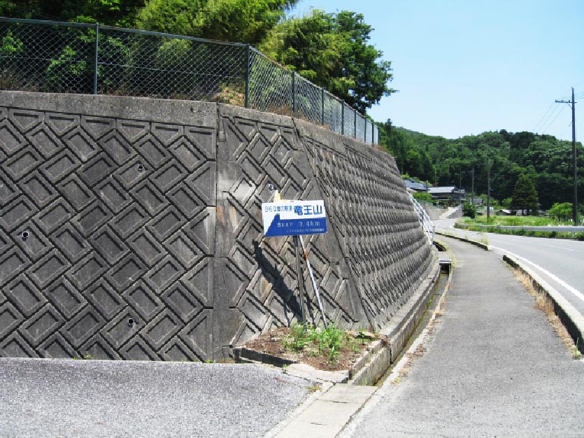 上下町―田頭線を西方に向かうと、北側の山頂に鉄製のアンテナが乱立するなだらかな山が見えてくる。これが龍王山である。山頂へは、道路南側の府中消防署小塚出張所から約100m先に向うと、道路脇のブロック擁壁前に『竜王山入口』と書かれた案内板が出ている。これより舗装された道路を北方へ道なりに約3.4q進むと、やがて鉄の柵で囲われた白い局舎が見えてくる。ここの前を経て木製の展望台、東屋、四等三角点のある広場に到着する。