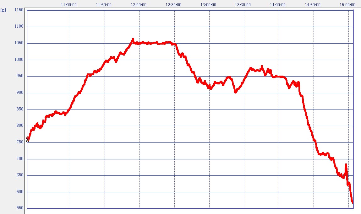 ⇒10:15(750m)明眼寺谷登山口10:30→(835m)尾根道出会い10:55