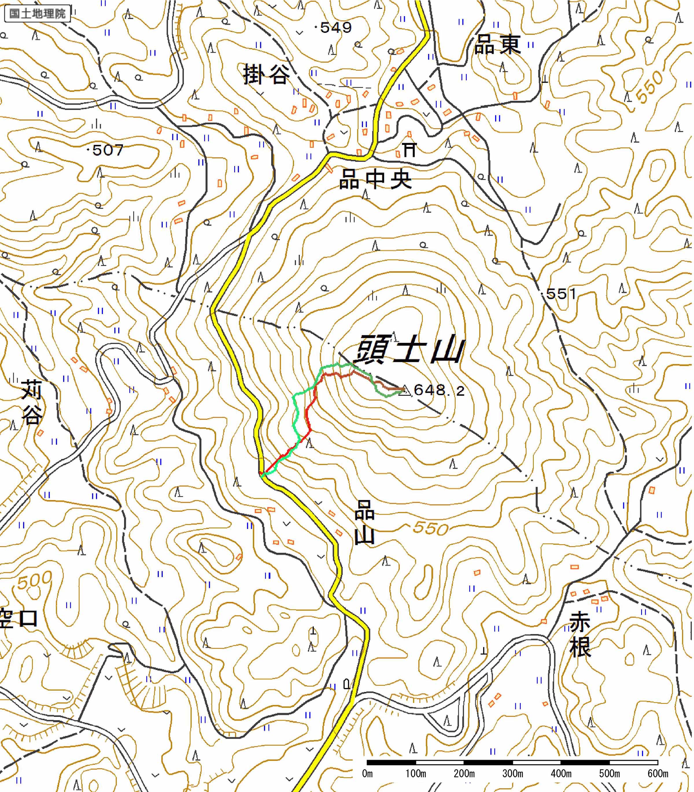 頭士山は、世羅町のほぼ中央北側の三次市との境にある。世羅町品山集落からの比高は約120mで、周囲からも目立つ円錐状の独立峰となっている。