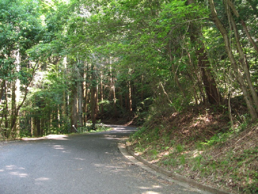 中国横断自動車道 尾道―松江道の甲奴インター出口の三叉路より南西に1.2q行き、突き当たった宇賀安田線(428号)を南西方に約1.0q行くと、三次市と世羅町の境界を示す看板がある。ここより約350m先の大きくカーブしたところの山側に小径の入り口がある。