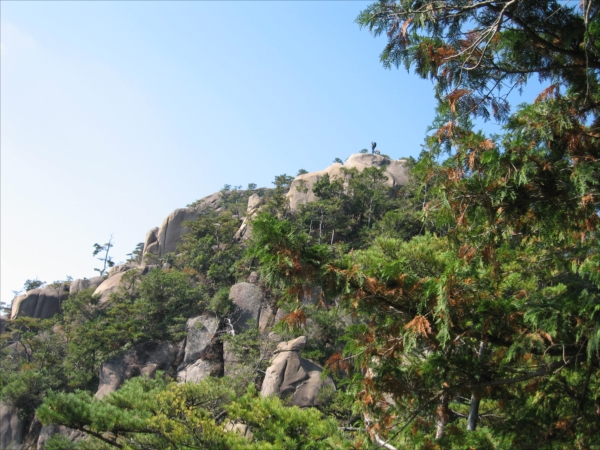 岩峰のてっぺんに1人立つ