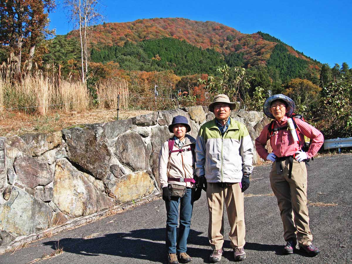 ここから自動車道を東に約30分歩き、今日の登山口である駐車場に着いた。(記 西田文雄)