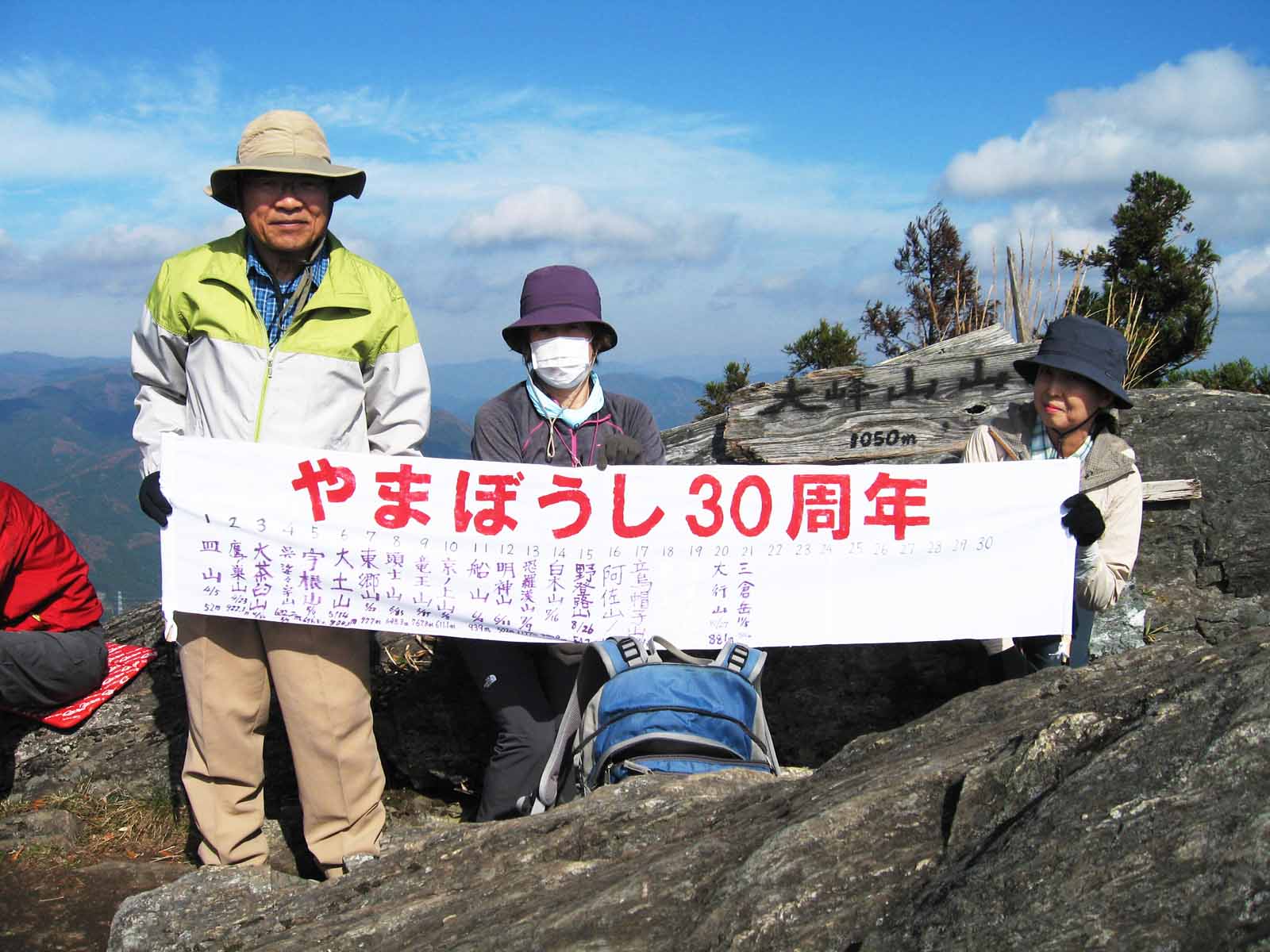 山腹の整備された登山道を登るとやがて尾根上に取り付いた。この尾根をさらに登り続けると展望のできる小岩があり、ここからは山頂東側の絶壁を望むことができた。急傾斜の道を登り続け三角点に到達した。ここから北東の岩峰に取り付くとその上が頂上である。天気が良かったので360度の展望ができた。