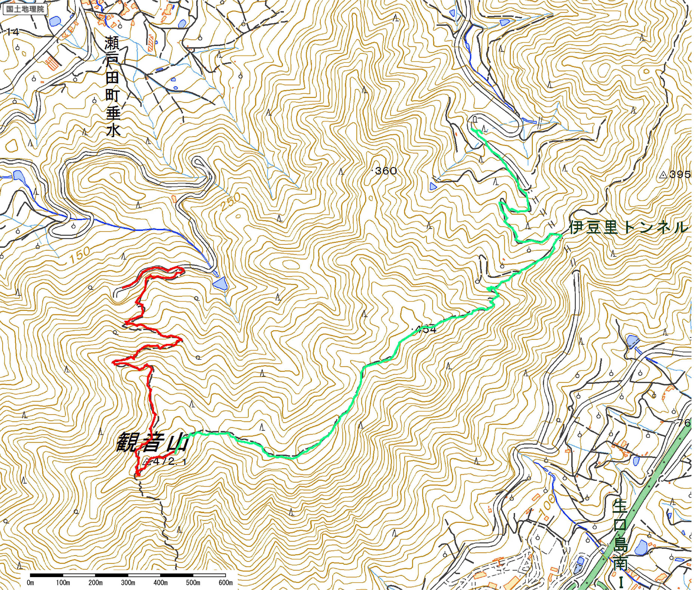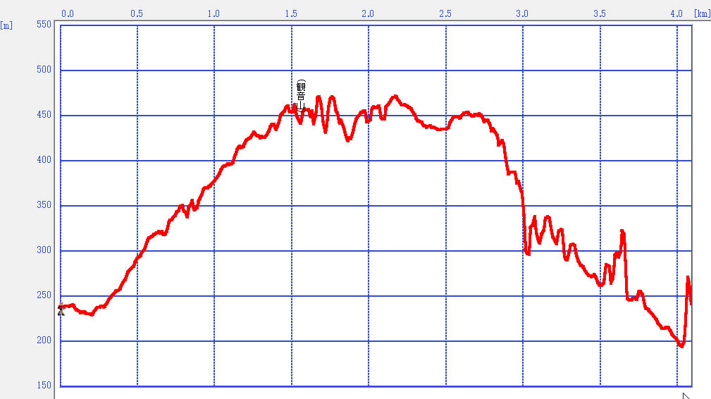 観音山山頂12:00(昼食休憩)12:55下山開始→伊豆里峠14:00→