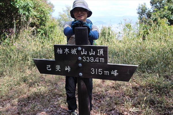 柚木城山山頂の標柱