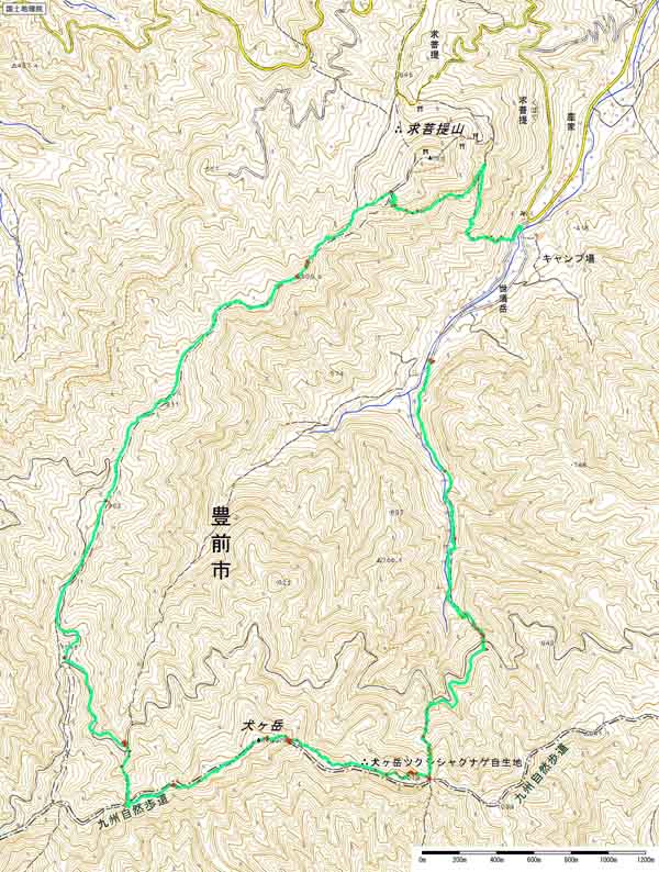⇒経読林道⇒求菩提山自然歩道13:15⇒杉の宿13:30⇒虎の宿
