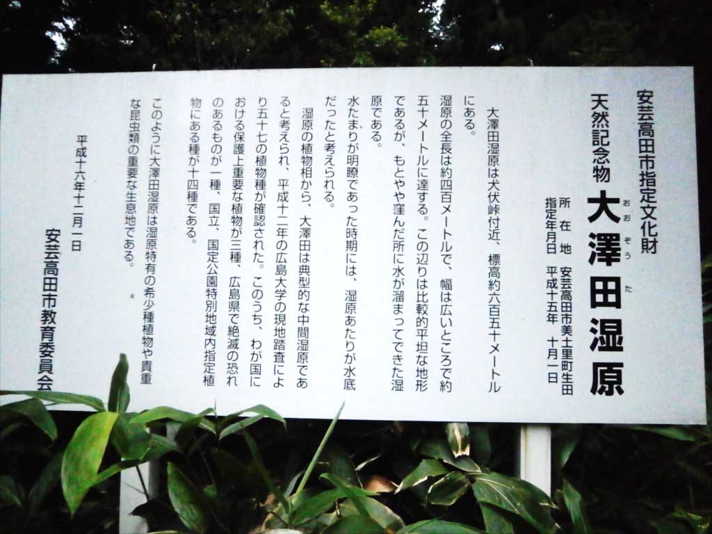 大澤田湿原の看板