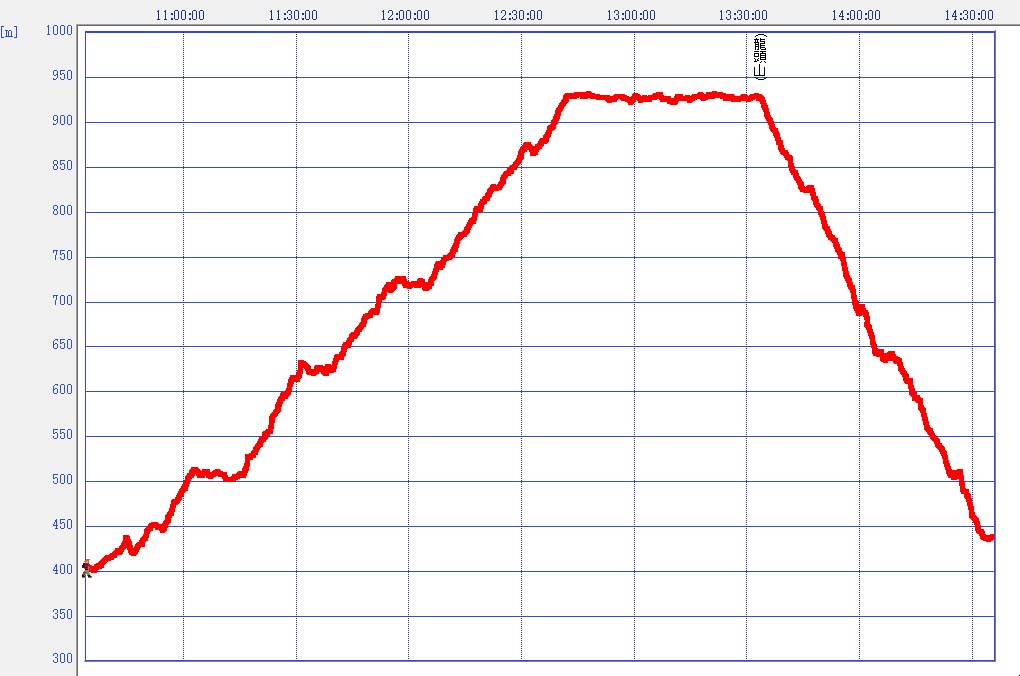 中龍頭12:30→龍頭山山頂12,50〜13:30(昼食)→下山14:00→