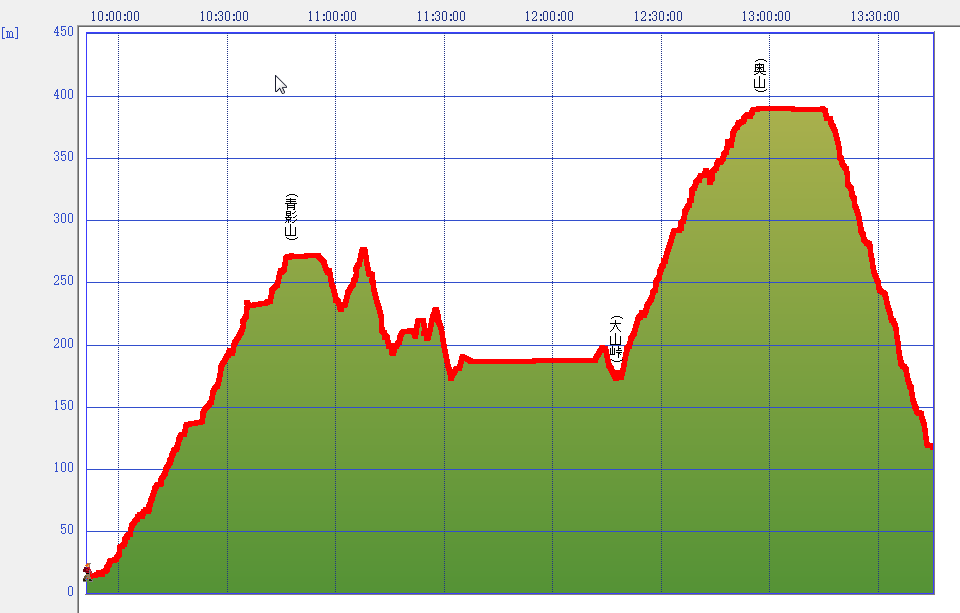〜青景山田熊登山口10:25〜青景山10:50〜大山11:25〜11:30東屋