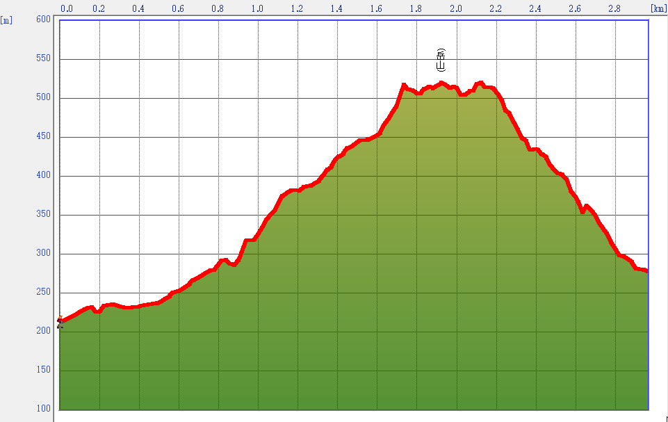 11:34岳山山頂→11:50見晴らし台(昼食)12:30→13:15下山口→