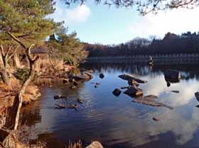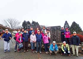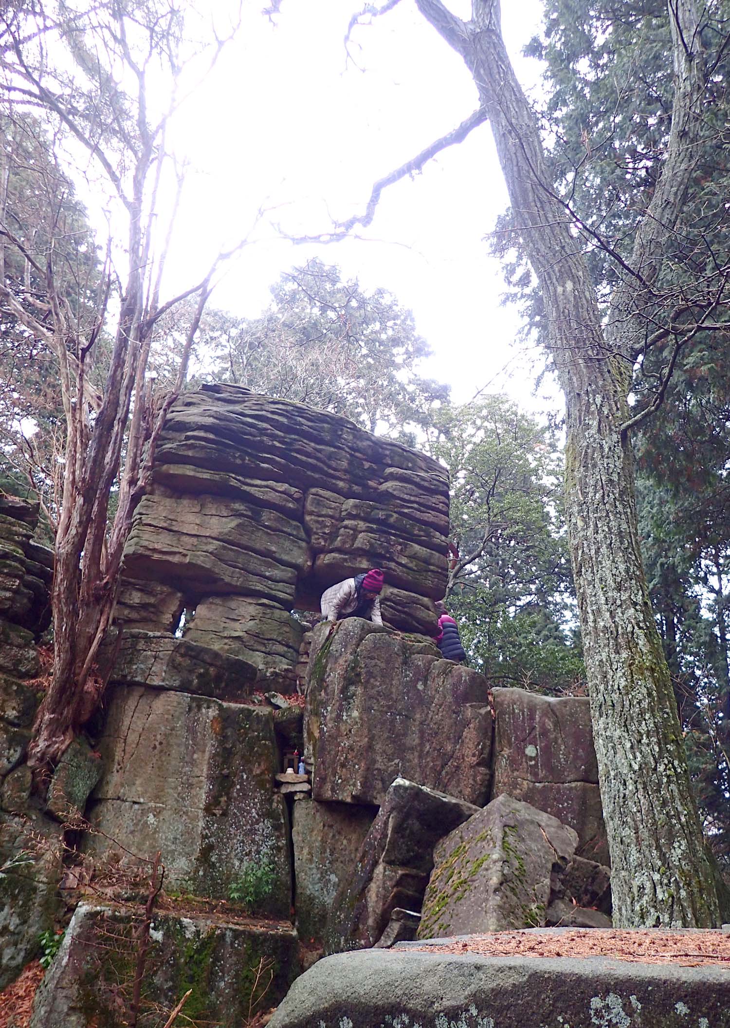 海が近いのに800m以上の高さがある野呂山は兜岩コースでも勾配はきつく、冬とは思えない暖かい日和の中、汗が流れる。しかし、明日は雨の予報。下山時にと考えていた仏石にも寄り、歩を進める。岩海遊歩道分岐で岩海へ立ち寄らないグループと立ち寄るグループの2組に分かれ、それぞれロッジに到着。