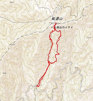 船通山登山口駐車場10:10⇒広場10:55⇒船通山のイチイの木11:50⇒山頂12:00〜12:55⇒広場13:40⇒船通山登山口駐車場14:00