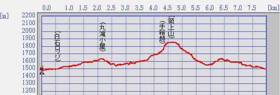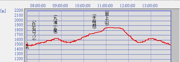 国民宿舎7:30出発〜土小屋7:45〜丸滝小屋8:40-8:50〜手箱越10:25-10:35〜筒上山11:00-11:30〜丸滝小屋12:55-13:10〜土小屋13:50-14:20バス出発⇒広島駅20:00着
