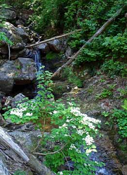 帰路は下り一辺通りである。3分程歩くとシシガ谷方面の分岐に出る。今日は湿地帯を避け南側の急斜面を利用する。足元にきれいなユキザサ、ナルコユリの花を写真に納めながら、一度の休憩を挟んでいっきに水越峠迄下る。あとは砂利道をのんびり歩く。