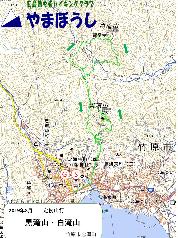 続行組 12:05〜12:40白滝山下駐車場東屋(昼食)13:10〜13:20龍泉寺〜13:30白滝山山頂13:45〜14:07林道出合〜14:45さくら堂14:50〜15:05忠海駅