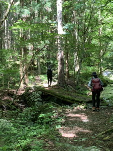 冠山山頂近くのサラサドウダンの花は時期を過ぎ、わずかに残っていた。大きな音を立てて流れる汐谷では行きには気づかなかった花を愛でながらのんびり下山した。